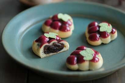 果実感たっぷりの葡萄餡は、赤ワイン風味の蜜で干し葡萄を漬け込み、シャキシャキとした果肉感や 芳醇な風味を引き出しました。