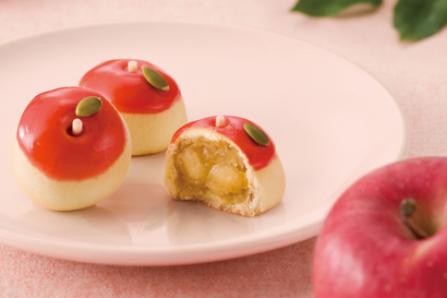 一口頬張ると、林檎の芳醇な香りと甘酸っぱさが、口いっぱいに広がります。まるでジューシーな林檎を食べているかのようなお饅頭に仕上げました。