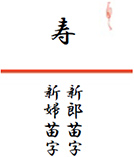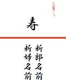 一般的に表書きは「寿」とし、記念品の差出人の名前は『ゲストへ両家からの贈り物』という意味合いで「新郎新婦の両家の苗字」を連名で入れます。すでに入籍済の場合でも両家からの贈り物という意味合いがありますので、旧姓の苗字を名入れします。