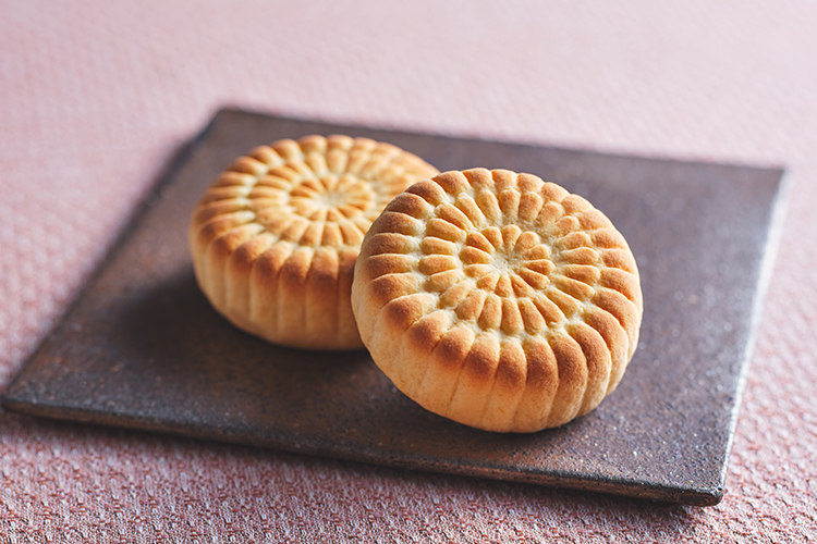 菊花をモチーフにした「華」は、鼓月が誇る60年以上愛され続ける焼きまんじゅうです。しっとりとした黄身餡からは、封を開けた瞬間にふわりと広がるバターとバニラの香りをお楽しみいただけます。やわらかな口当たりで、幅広い世代の方にご満足いただける味わいに仕上げています。