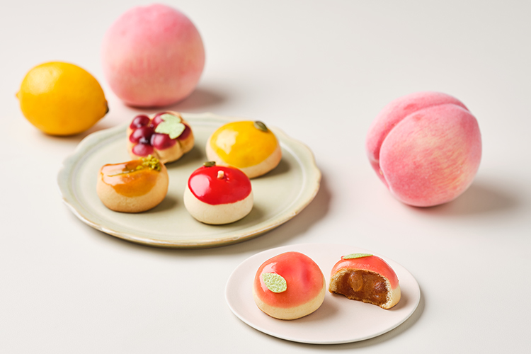 「摘み果」は、白桃・檸檬・林檎・葡萄・バナナなどの果実を贅沢に用いた果実饅頭です。愛らしいフォルムに包まれた餡は、それぞれの果実の魅力を最大限に引き出しながら、和の素材との調和を実現しています。