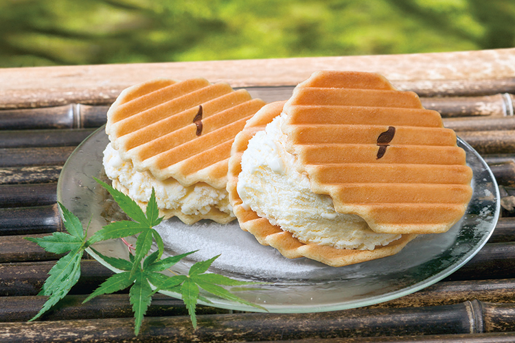 千寿せんべいとミルク感たっぷりなアイスクリームが出会った「千寿アイス」。千寿せんべいの口どけのよさはそのままに、すっきりとしたミルクの風味が広がります。定番のバニラに加えて抹茶のフレーバーもご用意しており、和と洋が調和した新鮮な味わいをお楽しみいただけます。
