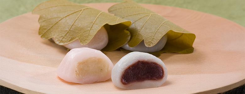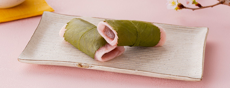 春の和菓子といえば桜もちです。桜色に染めた餅を桜の葉で包んだ姿は、春らしさにあふれています。関東風の「長命寺」は、小麦粉に白玉粉を加えた薄い生地で餡を包み、クレープのような薄さともっちりとした食感が特徴です。