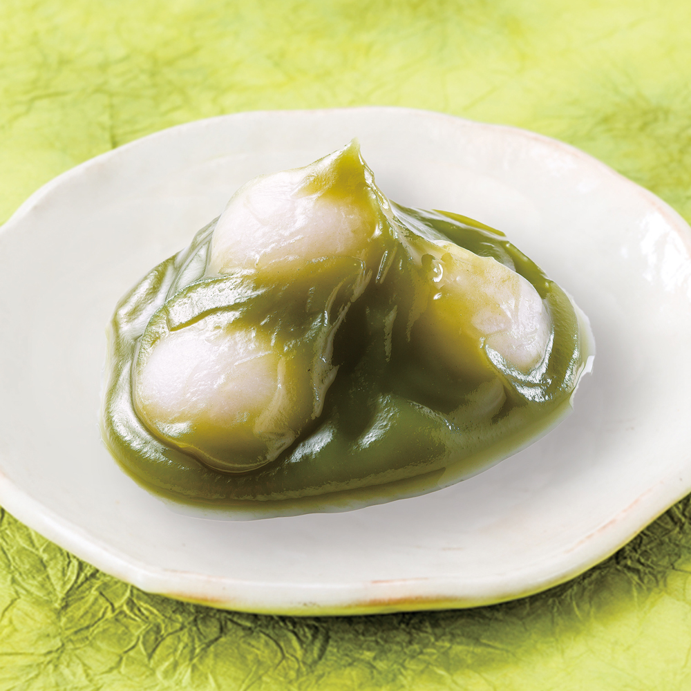 | 口あたりがなめらかでさらりとした皮むきこし餡は、お餅とよく絡み、あっさりとした上品な甘さが絶妙です。 白餡に独自ブレンドの宇治抹茶を加え、香り豊かな抹茶餡に仕上げました。 |